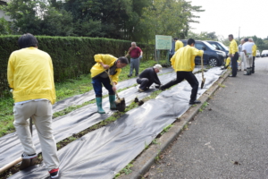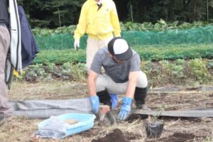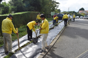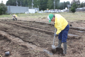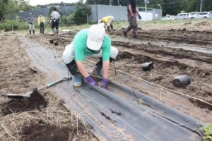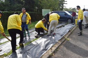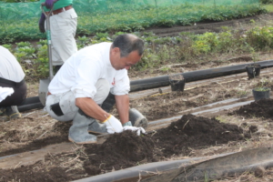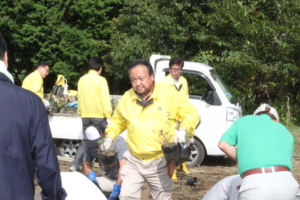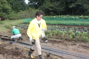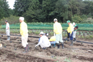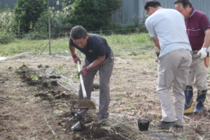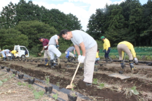 神場圃場で作業する各ライオン