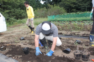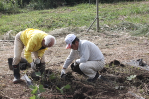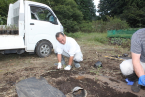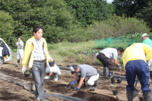 富士山への植樹に備えて、今年から本格的に平地での「親木」の育成に力を入れる事になり、今年は西中学校・玉穂圃場・神場圃場への植え付けを行いました。