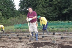 植え込み作業をする生徒さんたち