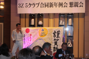 今年の年男最年長 小山LC L.渋谷 は、何と箱根駅伝で青山学院大学第8区で区間賞を取った下田選手のおじいさまに当たります。おめでとうございます。アトラクション 矢沢小吉ショーでも大いに盛り上がりました。