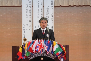 会長挨拶 会長 L.小野田 良夫 かぜで高熱にも拘わらず出席