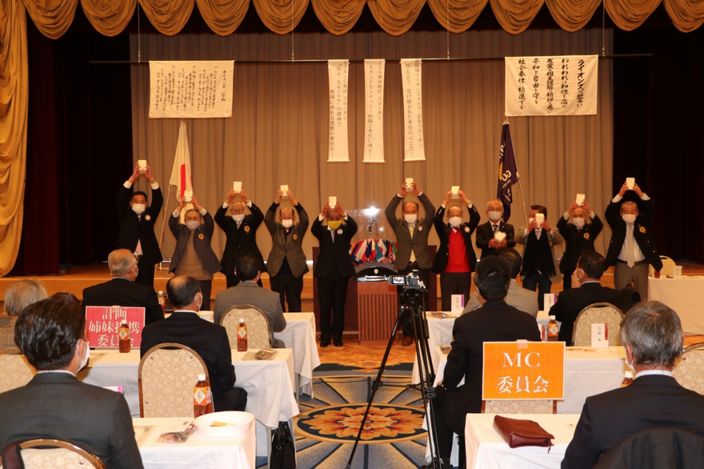 第1453回 1月第二例会 Posted on 2021年2月2日2021年2月2日 2021年1月20日御殿場高原ホテルにて、 1月第二例会が開催されました。 会長挨拶L.根上武久 ライオンズの誓いL.杉山忠親 新会員紹介L.坪口茂三 1月誕生ライオンの皆様 卒寿のお祝いL.勝俣幸雄 ローアL.芹沢年洋