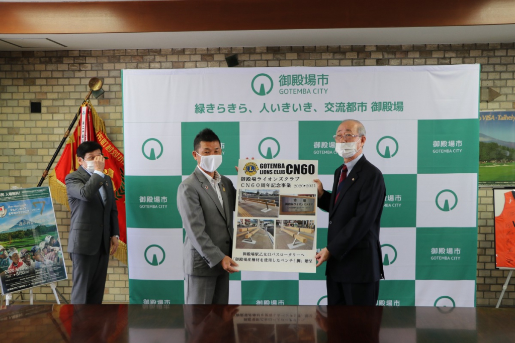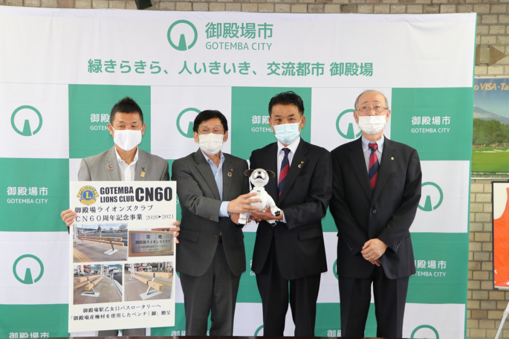 CN60周年記念アクティビティaibo・御殿場乙女口バス停ベンチ寄贈式 Posted on 2020年9月14日2021年2月2日 9月1日に御殿場市役所にてCN60周年記念アクティビティaibo・御殿場乙女口バス停ベンチ寄贈式を行ってきました。 L.根上武久会長挨拶 L.長島晃一実行委員長挨拶 御殿場市長挨拶 教育長挨拶 御殿場駅乙女口バス停ベンチ寄贈ボード aibo寄贈 市長・教育長・会長・実行委員長 出席された皆さん aibo