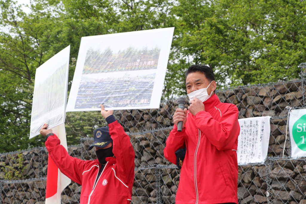 富士山例会 百年の計 富士山に緑を返そう運動 Posted on 2022年2月1日 2021年6月2日(水) 新型コロナウイルス感染拡大防止を踏まえ、規模を縮小して開催しました。 参加者‥206名 LCメンバー・御殿場西中学校生徒・玉穂財産区・静岡県自然保護課・御殿場市役所職員・御殿場市長・御殿場市教育長 会長挨拶 L.根上武久 例会風景 作業内容説明 作業中 みんなで力を合わせて 丈夫に育ちますように