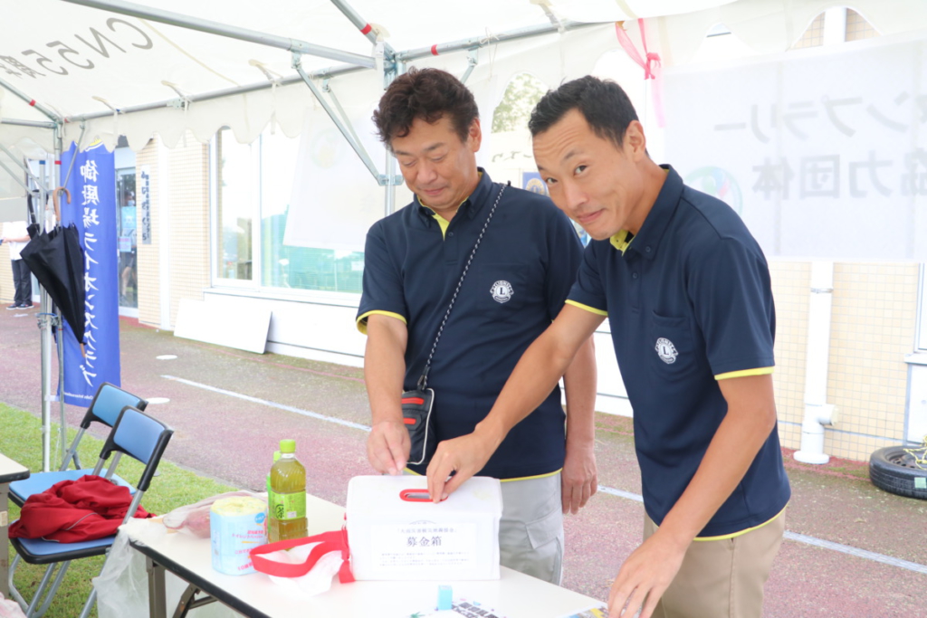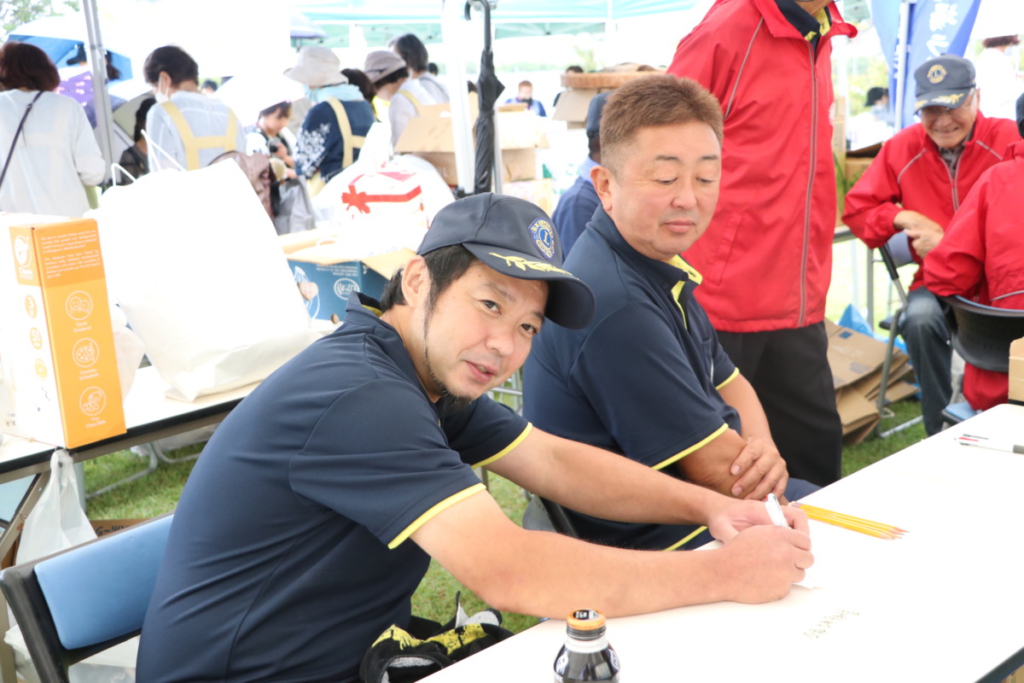 御殿場市ふれあい広場 献眼者登録活動 Posted on 2023年9月25日 9月23日(土) 第40回御殿場市ふれあい広場が、「市民交流センターふじざくら」にて開催されました。あいにくの雨模様にも関わらず沢山の来場者がみえました。 YCE・社会福祉委員会 ・三献委員会が 交流活動と献眼登録活動を行いました。 募金活動にも協力しました。L.勝間田 賢治 L.芹澤 克彦 笑顔が良いですね。L.勝又 義文 子供の輪投げ。L.勝又 親男 献眼登録準備中です。 L.井上 将人 L. 小野 盛久 みんなで作戦会議中。 ライオンズ号も登場。 御殿場ライオンズクラブ テント