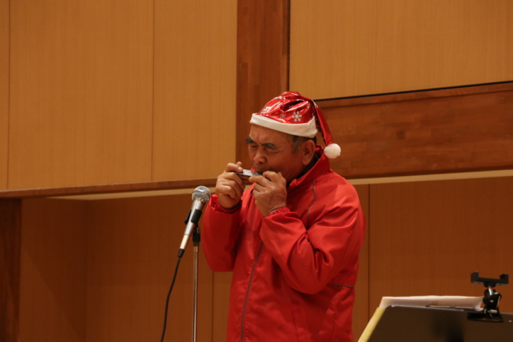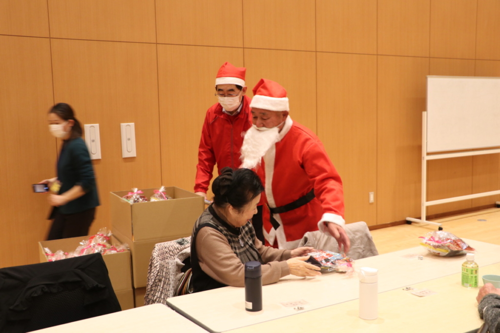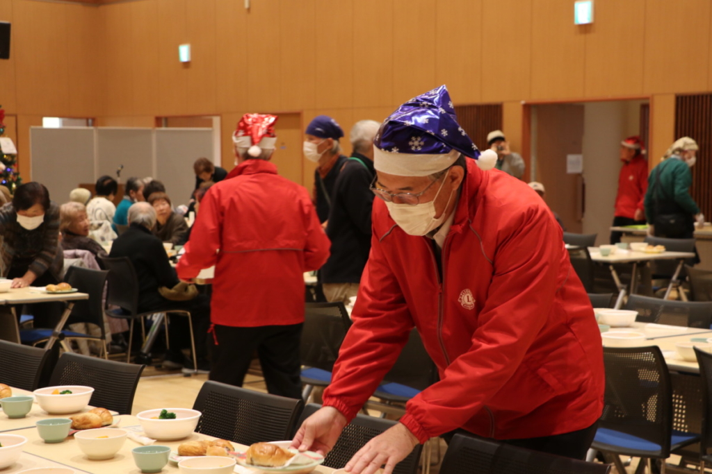 一人暮らし高齢者ふれあい会食会 Posted on 2024年12月30日 12月12日(木)御殿場市民交流センターふじざくらに於いて一人暮らし高齢者ふれあい会食会が開催されました 大きなクリスマスツリーです 配膳のお手伝いしました 揚げパンも美味しかった L.太田勲会長スピーチ クリスマスプレゼント! 太田サンタからプレゼント配達中 L.芹沢年洋ハーモニカの熱演 YCE・社会福祉委員会お疲れ様です