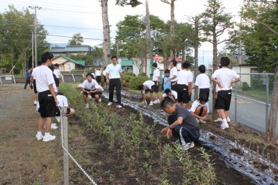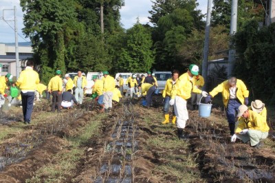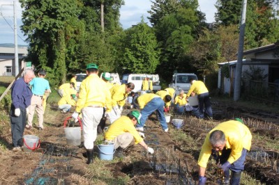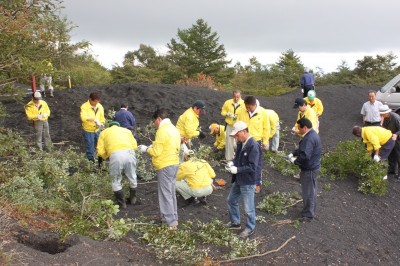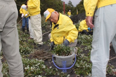 ライオンズデー (バッコヤナギ採取と植え付け) Posted on 2013年10月10日 平成25年10月2日(水) 場所:富士山御殿場口 参加者:ライオンズメンバー*バッコヤバギ採取 *ナタやはさみで剪定 *長さは揃えます *バケツに入れて圃場に運びます *西中圃場で生徒に植え付けのお手伝いをしてもらいます *玉穂圃場