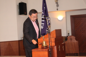 例会は時之栖「桜の礼拝堂」にて厳粛に、懇親会は礼拝堂横の「Buffet Paro」にて楽しく開催しました。(あいにくの天候のため、プールサイドではなく室内で開催)