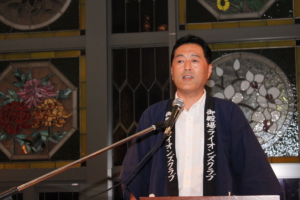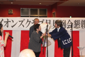 計画・姉妹提携委員長 L土泉清司 より 頑張ってくれた「ぴのん」さんへ花束贈呈