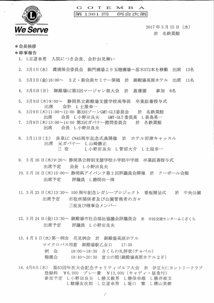 次期委員会メンバー発表 次期幹事 現幹事補 L.勝亦 英樹