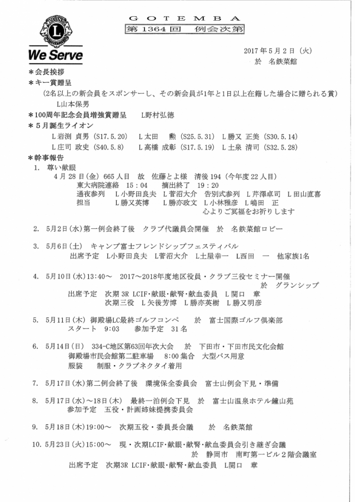 本日の例会は、大きな行事がなく、L.黒崎一嘉のメンバースピーチ等、落ち着いた雰囲気の中で開催されました。