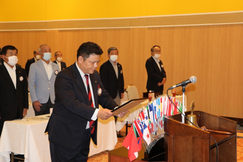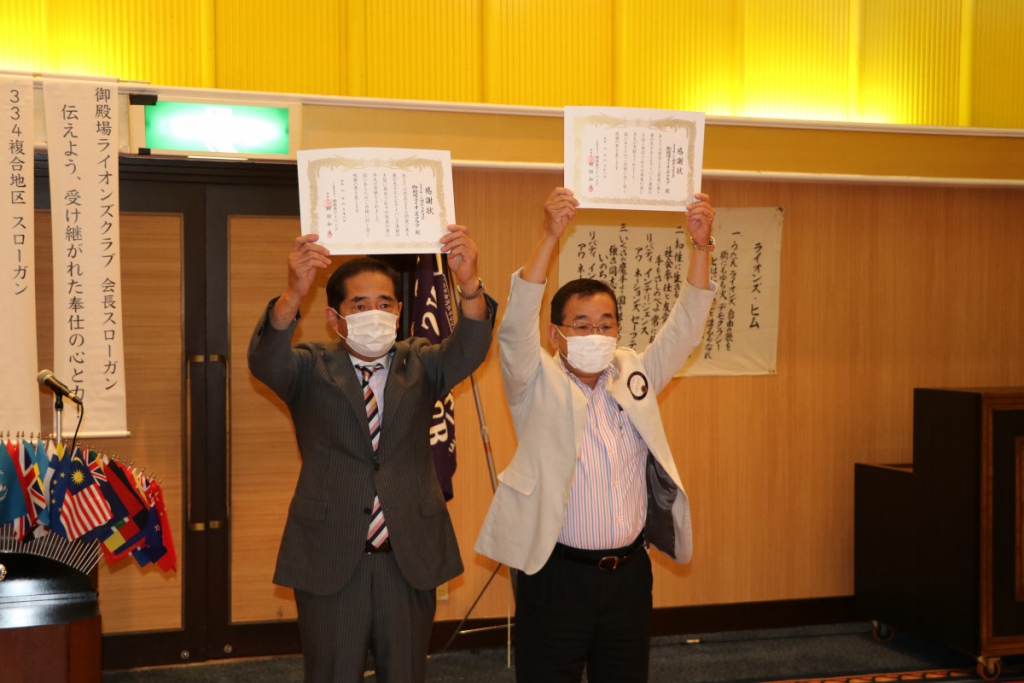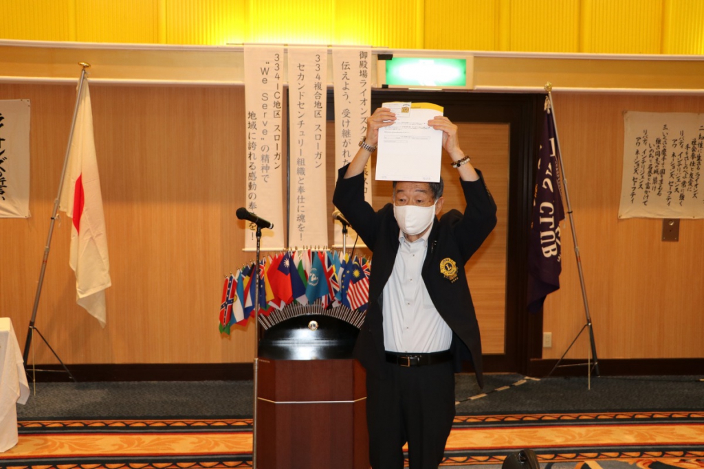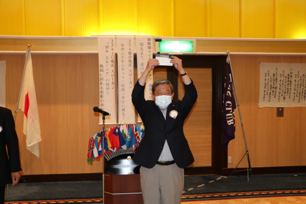 第1441回 7月第二例会 Posted on 2020年8月1日2021年2月2日 コロナ渦の中7月15日に、御殿場高原ホテルにて7月第二例会が開催されました。 L.根上武久会長 挨拶 L.勝又薫 ライオンズの誓い ZC L.関口章 LCIF$1,000寄付バッチ贈呈 L.芹澤孝寿 100周年記念会員増強賞贈呈 L.芹澤卓司 L.小野田良夫 静岡県アイバンクより感謝状贈呈 L.池谷光雄 予算案発表 L.田山直喜 幹事報告 L.小野盛久 L.天野栄太郎 テールツイスター登場 L.鈴木克行 主席率発表 L.山本裕司 ローア