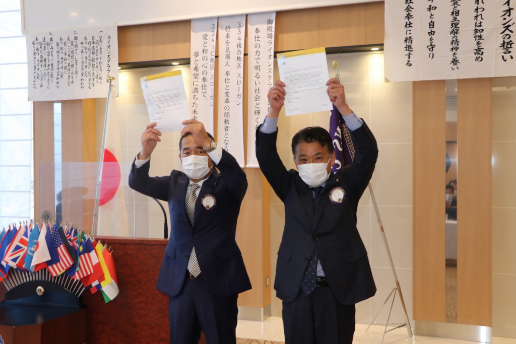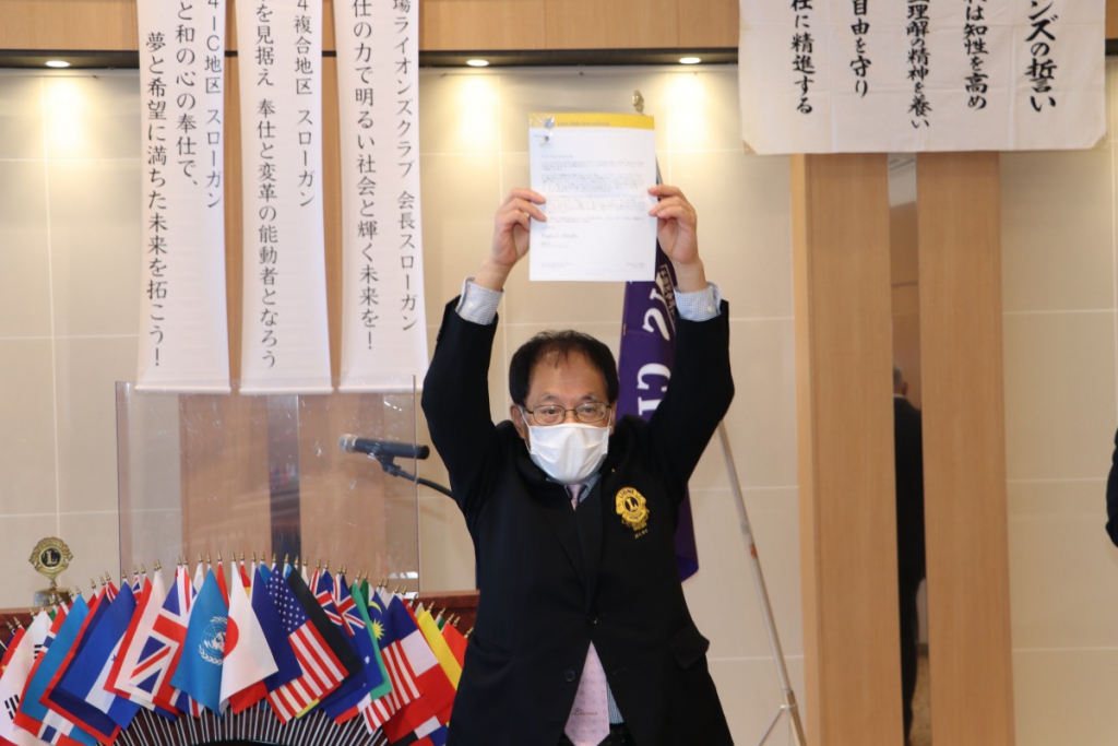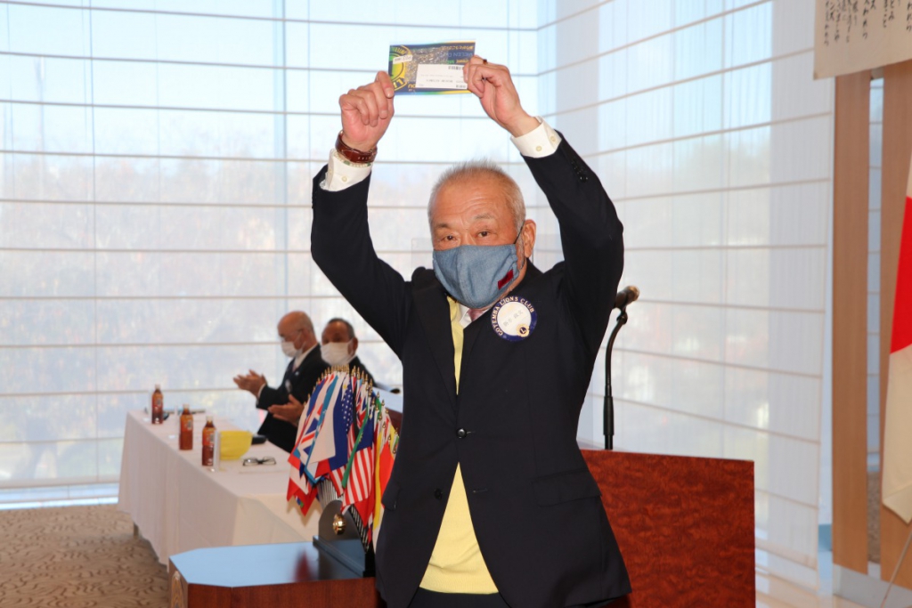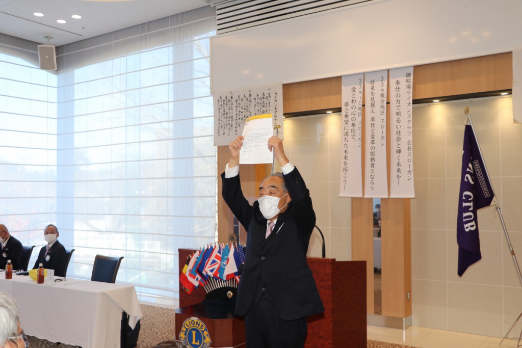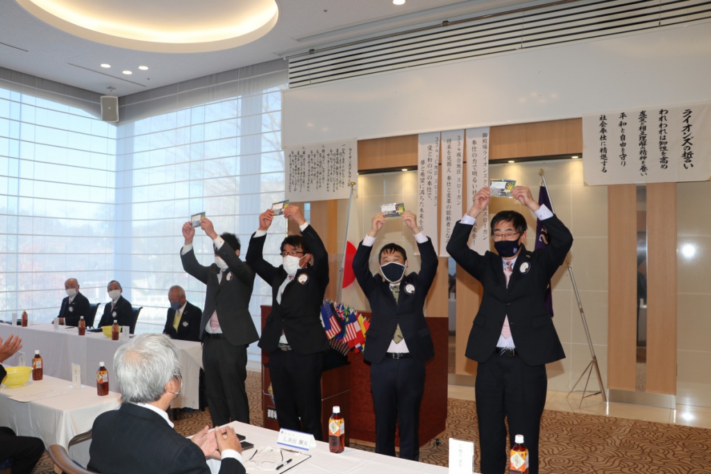 第1474回 12月第一例会 Posted on 2022年2月1日 2021年12月1日御殿場高原ホテルにて12月第一 例会が開催されました。 会長挨拶 L.勝亦政文 ビジター挨拶 L.井出輝夫(清水町LC所属) モナーク・シェブロン贈呈 35年在籍 モナーク・シェブロン贈呈 30年在籍 モナーク・シェブロン贈呈 20年在籍 モナーク・シェブロン贈呈 15年在籍 モナーク・シェブロン贈呈 10年在籍 LCIFキャンペーン100アワード贈呈 LCIFキャンペーン100アワード贈呈 LCIFキャンペーン100アワード贈呈 12月誕生ライオンの皆様 メンバースピーチ 三献委員長 L.関 豊 ローア L.杉山弘人