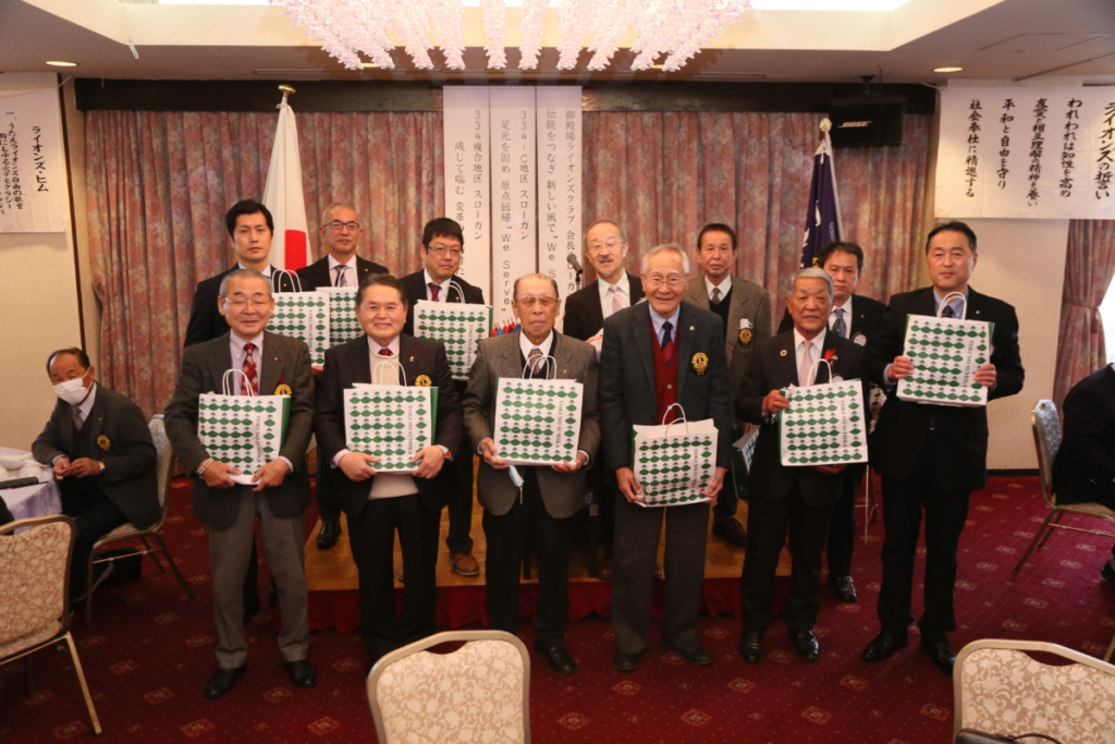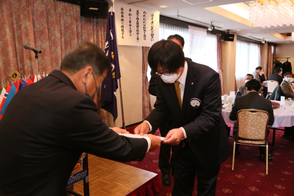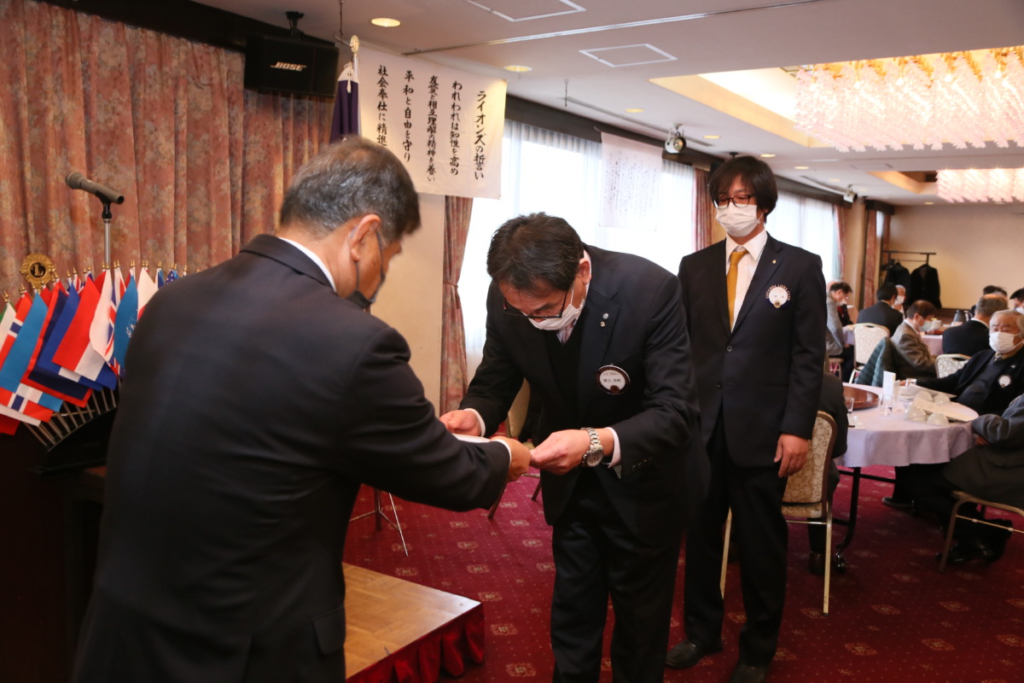 第1501回 1月第二例会 Posted on 2023年2月23日2023年2月23日 2023年 1月18日(水) 名鉄菜館に於いて 1月第二例会が開催されました 会長挨拶 L. 勝又 明彦 2021~2022年度会員満足度向上アワード贈呈 直前会長 L.勝亦 政文 L.勝又 茂樹 L.戸塚 勝 ライオンズ育成グループ研修会修了書伝達 L.小野 盛久 L.黒﨑 一嘉 キー賞 贈呈 年男 お祝い L.鎌野 忠 1月 誕生ライオンの皆様 おめでとうございます! セミナー報告 ライオンズ育成グループ研修会 L.戸塚 勝 ローア L.土屋 廣実