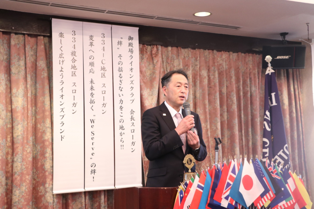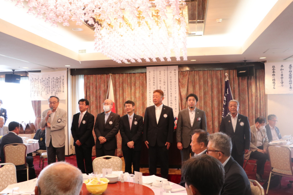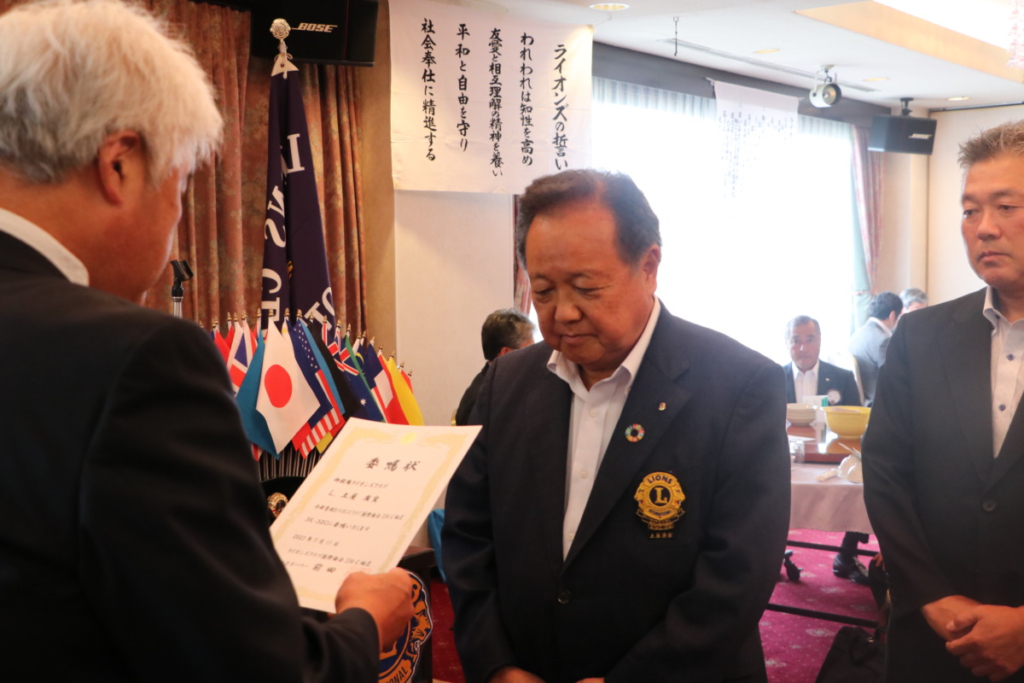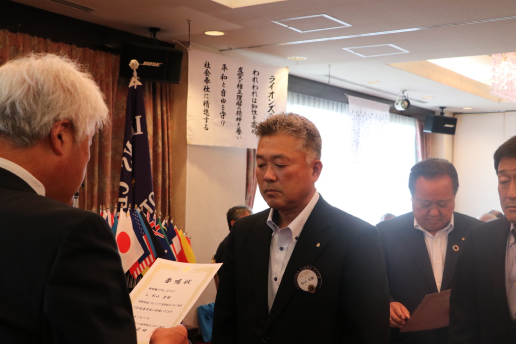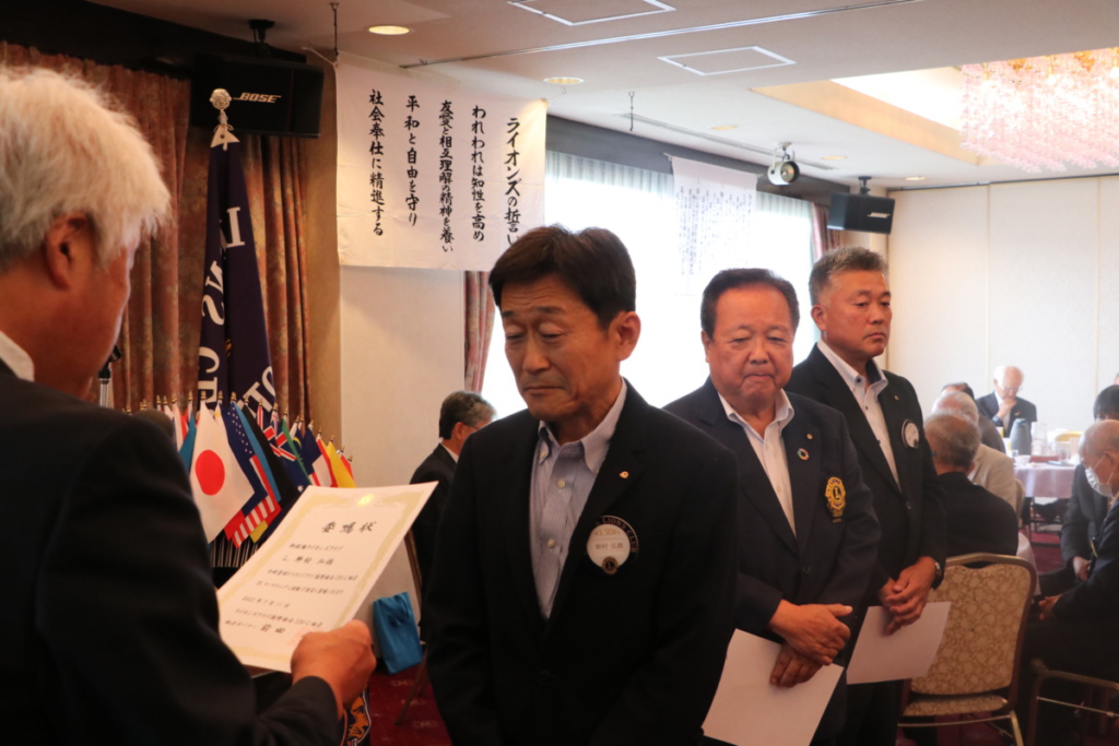 第1512回 7月第一例会 Posted on 2023年7月24日 7月5日(水) 名鉄菜館に於いて 7月第一例会が開催されました 会長挨拶 L.鎌野 純一 幹事報告 L. 天野 栄太郎 各委員長紹介及び挨拶 1年間宜しくお願いします。 地区役員委嘱状伝達 3R 3Z・ZC L.土屋 廣実 地区YCE副委員長 L.杉山 忠親 3R マーケティング・L情報・IT委員 L. 野村 弘徳 決算報告 L. 高杉 憲市 7月誕生ライオン 記念品贈呈 テールツイスター L. 杉山 弘人 L. 勝又 惠一郎