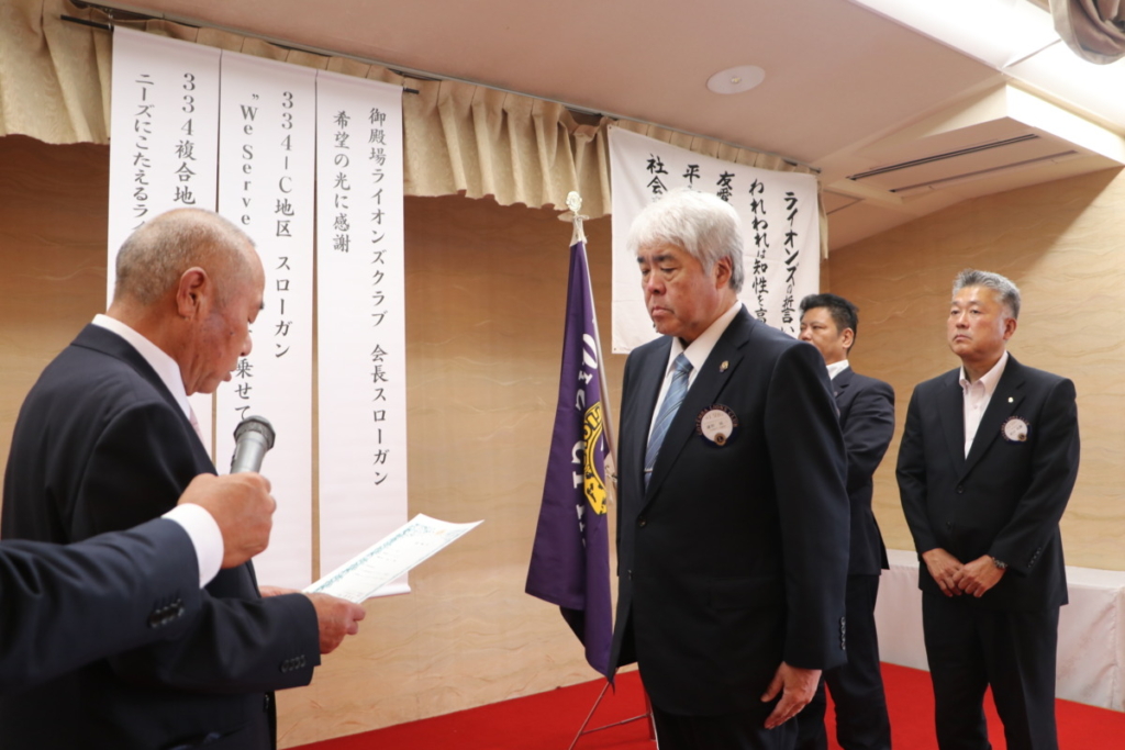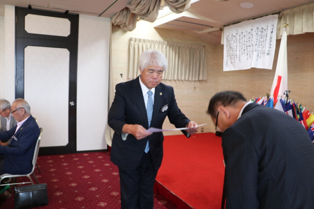 第1536回7月第一例会 Posted on 2024年7月4日2024年8月1日 7月3日(水)名鉄菜館に於いて7月第一例会が開催されました L.太田勲会長挨拶 L.鎌野純一前会長静岡県アイバンク感謝状贈呈 新三役へバッチの引継ぎ L.小林雅彦幹事挨拶 L.佐藤章会計挨拶 地区役員委嘱状伝達L.鎌野純一334複合地区マーケティング委員 334-C地区マーケティング・L情報・テクノロジー委員長兼キャビネット副幹事 334複合地区YCE委員 334-C地区YCE委員長 L.杉山忠親 334複合地区ライオンズクエスト・薬物乱用防止委員 334-C地区薬物乱用防止委員長 L.勝又薫 L.鎌野忠 L.芹沢年洋終身会員となりますので宜しくお願い致します 7月誕生ライオン L.勝又淳吉前会計より決算報告 L.小林雅彦幹事報告 ローアL.鎌野純一