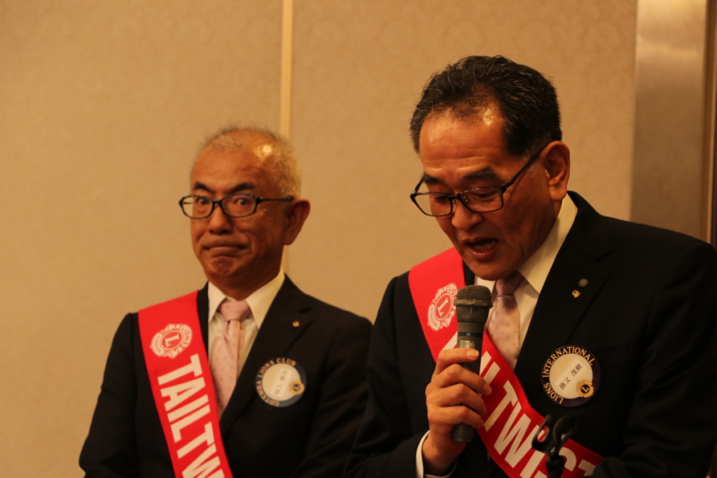 第1557回5月第二例会 Posted on 2025年5月31日 5月21日(水)名鉄菜館に於いて5月第二例会が開催されました L.太田勲会長挨拶 6月誕生ライオンおめでとうございます! ゲストスピーチL.徳田和人沼津LC静岡県薬物乱用防止指導員に講和を頂きました L.小林雅彦幹事報告 テールツイスター登場 最終となりましたがメンバーの皆様ご協力ありがとうございました L.戸塚勝テーマお疲れ様です! 委員会報告 L.米原誠環境保全委員会副委員長 委員会報告 L.神野義孝計画姉妹提携委員長 L.勝又充夫出席・情報委員長 お疲れ様です L.矢後芳昭初めてのローア!