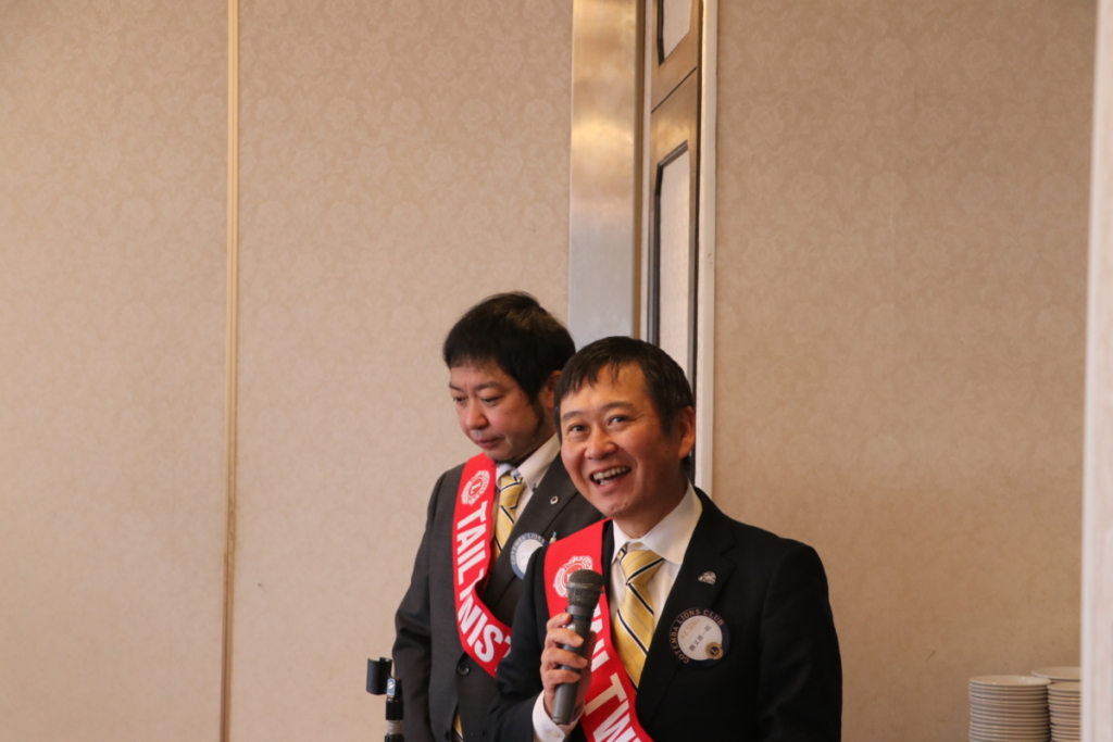 第1573回1月第二例会 Posted on 2026年1月21日 1月21日(水)名鉄菜館に於いて1月第二例会が開催されました 会長L.勝亦英樹挨拶 公認ガイディングライオン資格証伝達 1月誕生ライオンおめでとうございます 幹事L.土屋雅人幹事報告 テールツイスター登場 ゴルフ部長L.芹澤克彦小松LC親善ゴルフコンペ案内 出席情報委員長L.杉山弘人出席の率報告 ライオンズ歴36年、年男L.岩渕貞夫ローア