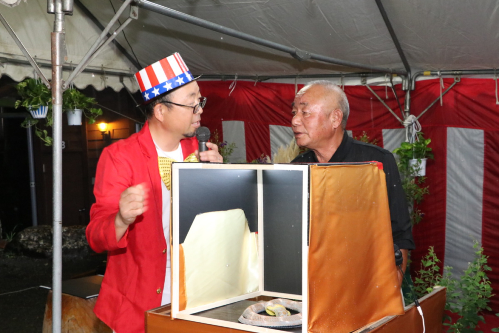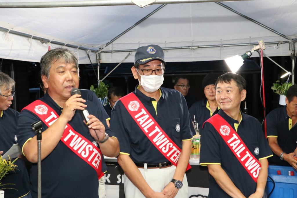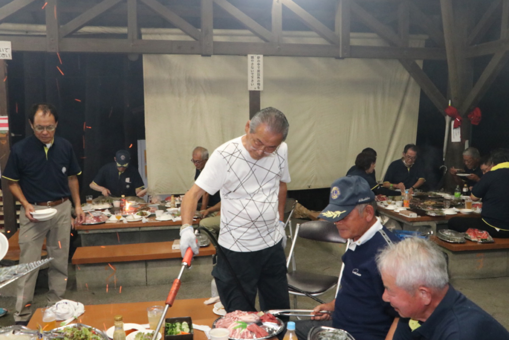 第1516回 月見例会 Posted on 2023年9月25日 9月6日(水)乙女森林公園キャンプ場にて月見例会が開催されました。 御殿場ライオンズクラブのクールポコ L.益山 嘉寛 L. 立道 浩幸 「な~にぃ~⁉ やっちまったな~‼」 食事の前の様子。 早く食べたいな~! ライオンレディの皆様 ライオンレディの皆様 ライオンレディの皆様 火の扱いはお手の物 L.渡邊 功 「つぼぐちフードサービス」さんの極上のお肉、とても美味しかったですね。 餅つきは任せろ。L.勝亦 英樹 日頃の恨みを晴らします。L.鎌野 純一ご夫妻 箱の中身は何でしょう?L.太田 勲 犬のような猫のような…。どっちかな~?L.勝又 明彦 また逢う日まで~ テールツイスター登場 ローア L.芹澤 克彦