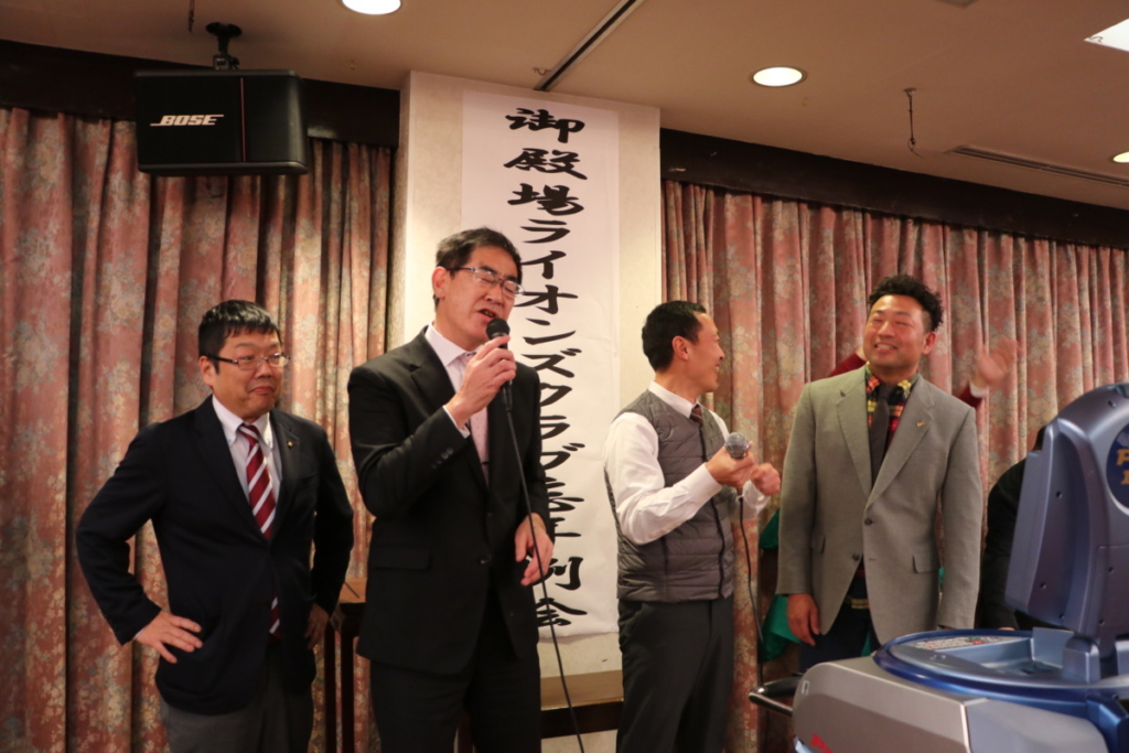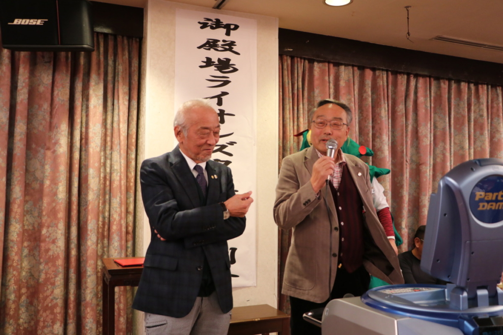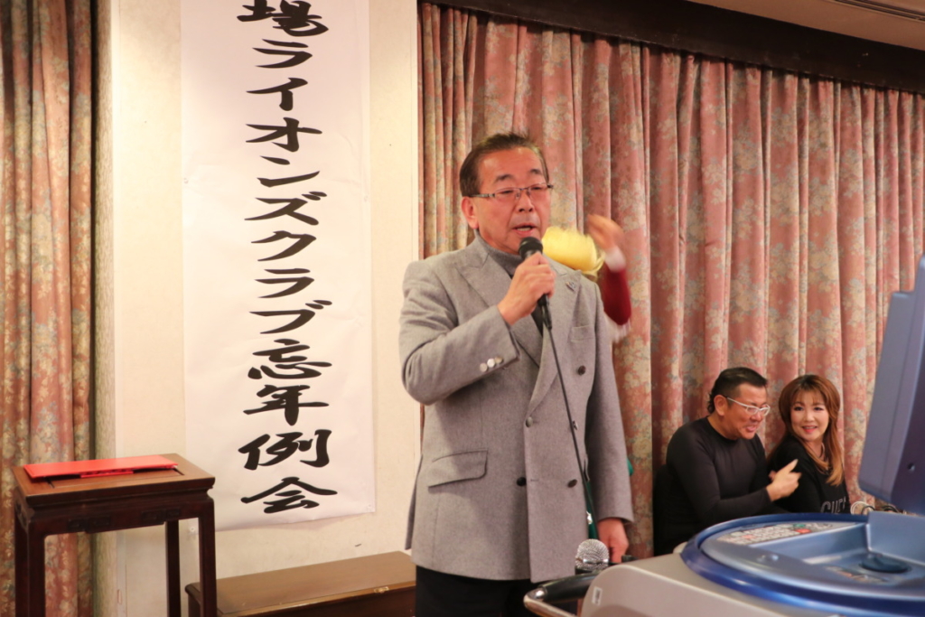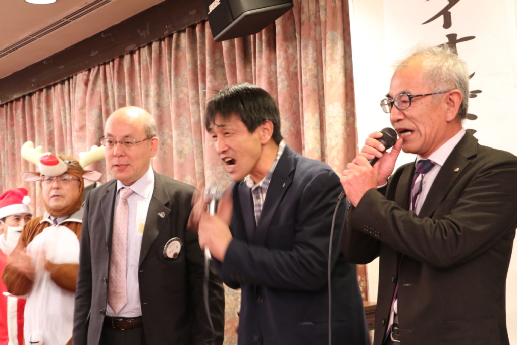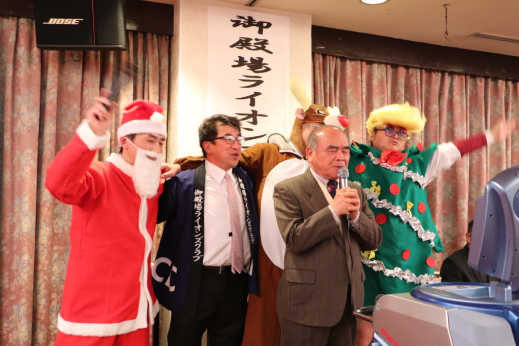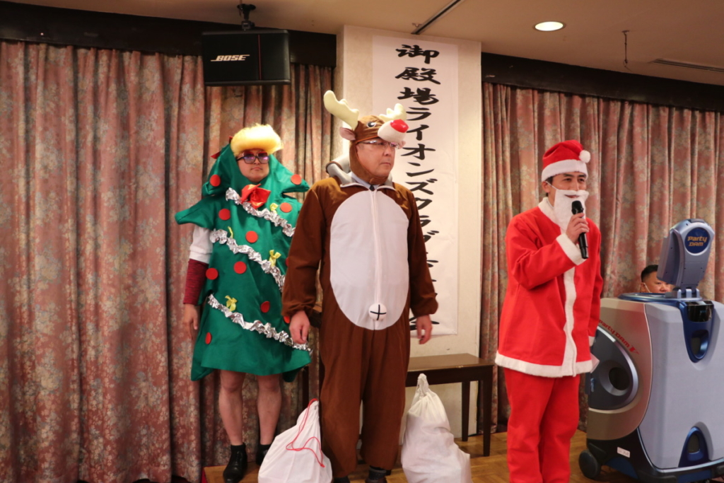 第1523回 12月第二例会 Posted on 2024年2月26日 12月20日(水) 名鉄菜館に於いて12月第二例会、忘年例会懇親会が開催されました 例会風景 ローア L. 小野 盛久 計画・姉妹提携委員会のメンバー L.立道 浩幸(サンタクロース)L.橘高 健二(トナカイ)L. 沼田 幸治(ツリー) 委員会対抗カラオケ大会 MC委員会メンバー 委員会対抗カラオケ大会 三献委員会のメンバー 委員会対抗カラオケ大会 YCE・社会福祉委員会 L.小野田 良夫 委員会対抗カラオケ大会 GMT・GLT委員会L.外山 恵市 L.勝亦 政文 委員会対抗カラオケ大会 計画・姉妹提携委員会 L.渡邊 功 委員会対抗カラオケ大会 出席・情報委員会 L.芹沢 年洋 アトラクション 倖田未來さん アトラクション 倖田未來さんと記念撮影