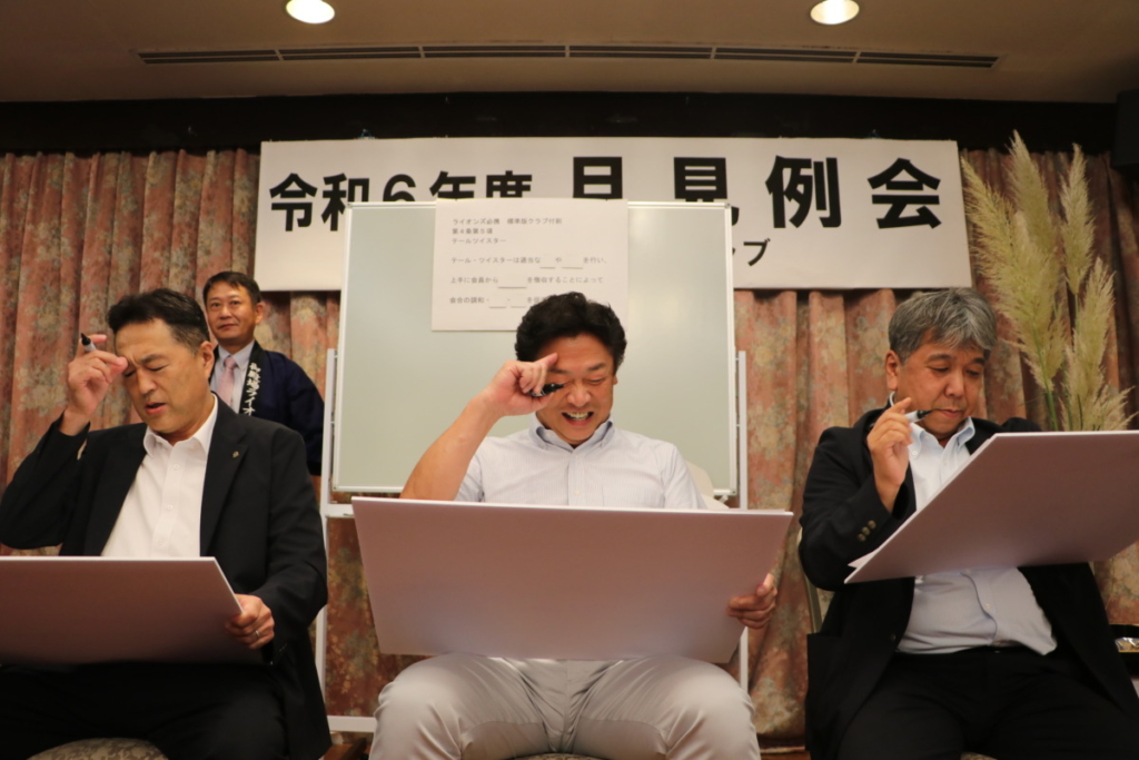 第1540回9月第一例会(月見例会) Posted on 2024年9月29日 9月4日(水)名鉄菜館に於いて9月第一例会が開催されました L.太田勲会長挨拶 L.小林雅彦幹事報告 テールツイスターL.勝又茂樹 素晴らしい演奏 L.根上武久GMT・GLT委員長セミナー報告 L.勝又恵一郎ゴルフ部長親善ゴルフ大会報告 ローアL.勝又正人 懇親会乾杯L.勝亦英樹第一副会長 月見といえば団子? 宴席の様子 アトラクション 何かなぁー L.池谷光雄第二副会長閉会挨拶