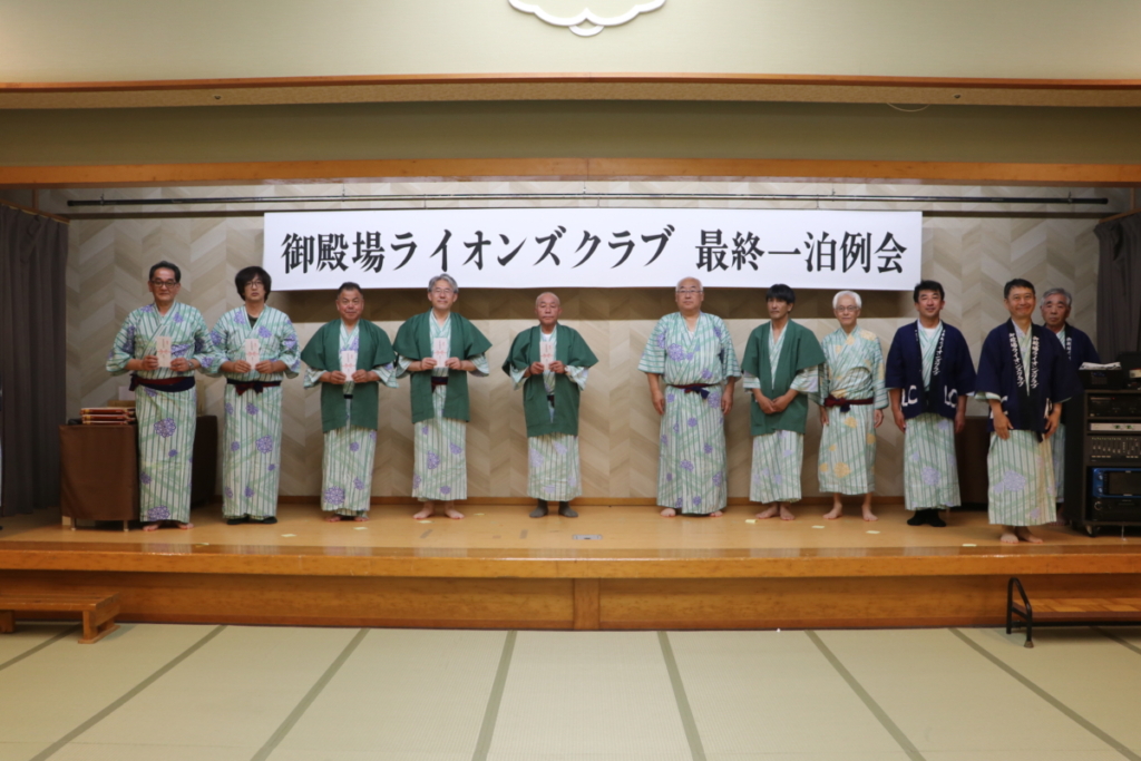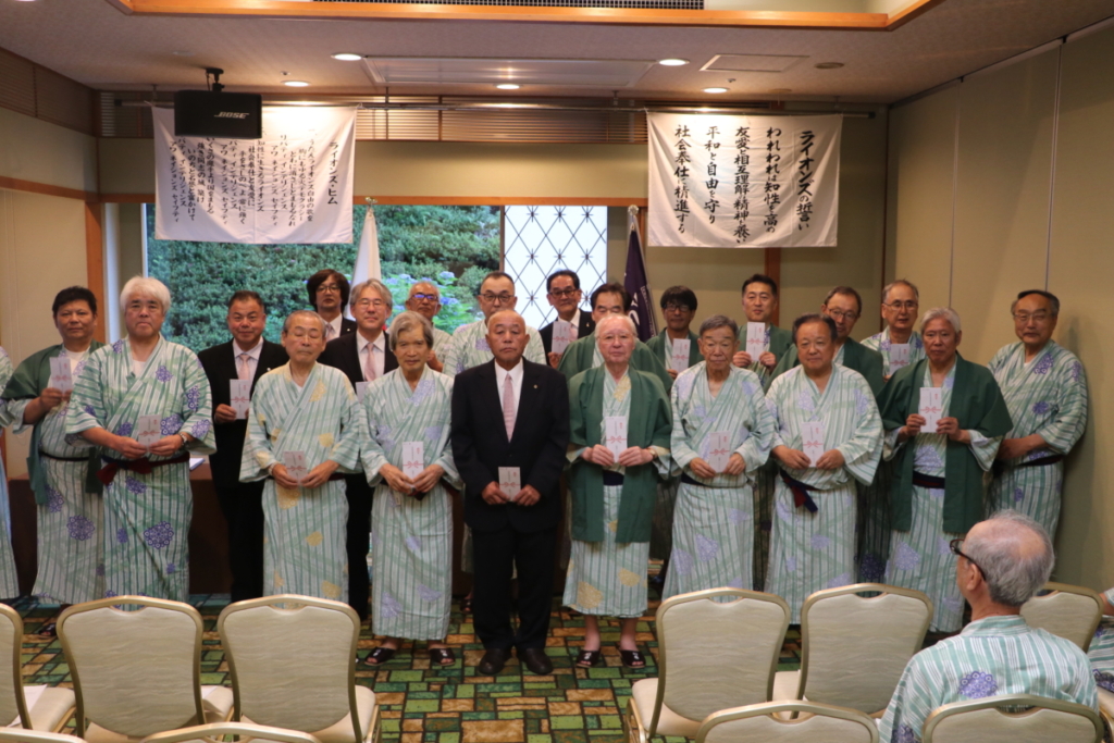 第1559回6月第二例会(一泊例会) Posted on 2025年6月22日 6月18日(水)伊豆長岡温泉ホテル天坊に於いて6月第二例会が開催されました L.太田勲会長最終スピーチ マーケティング・L情報・テクノロジー委員長兼キャビネット副幹事L.鎌野純一国際会長感謝状授与 例会皆出席者表彰素晴らしいです L.小林雅彦幹事最後の幹事報告お疲れさまでした L.佐藤章会計挨拶お疲れさまでした 旧五役お疲れさまでした 新五役がんばってください!